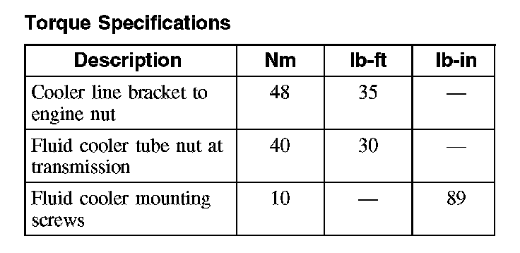Torque Specifications: