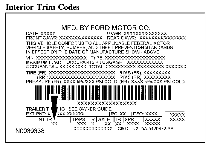 The interior trim codes are listed as a 2-part code. The first character listed is the interior fabric. The second character listed is the interior color.