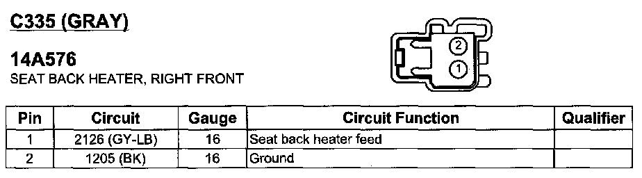 Seat Back Heater, Right Front