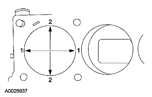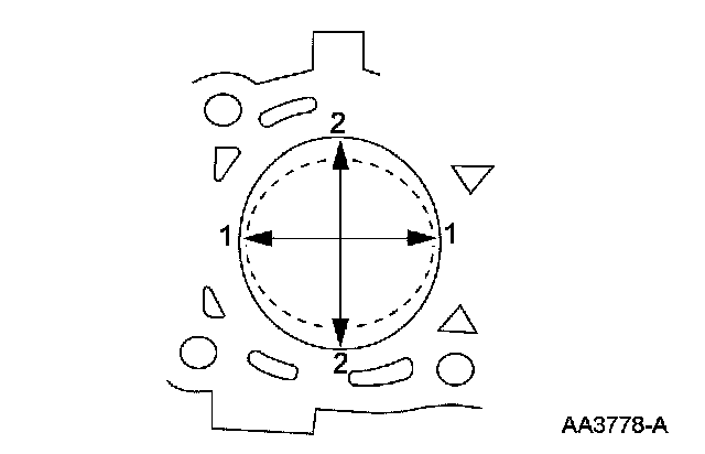 1. Measure the cylinder bore in 2 directions. The difference is the out-of-round. Verify the out-of-round is within the wear limit and bore the cylinder to the next oversize limit.