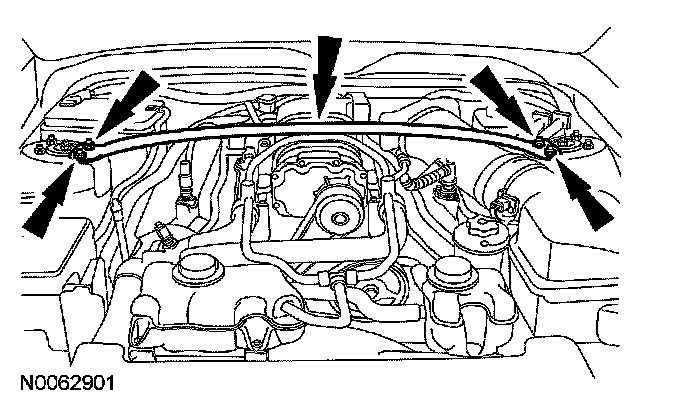 6. Remove the 4 nuts and the strut tower cross brace.