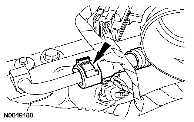53. CAUTION: Do not allow the steering wheel to rotate while the steering column intermediate shaft is disconnected or damage to the clockspring can result. If there is evidence that the wheel has rotated, the clockspring must be removed and recentered.