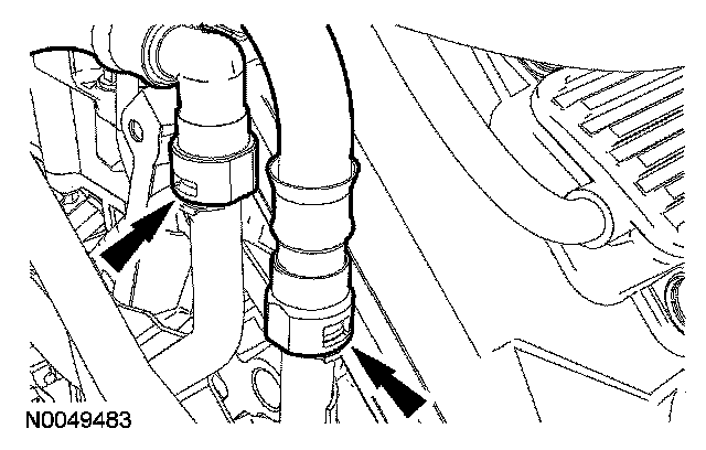 22. Disconnect the 2 heater hoses from the coolant tube assembly at the rear of the engine.