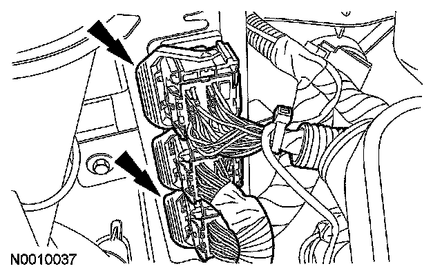 28. Disconnect the upper and lower powertrain control module (PCM) electrical connectors.
