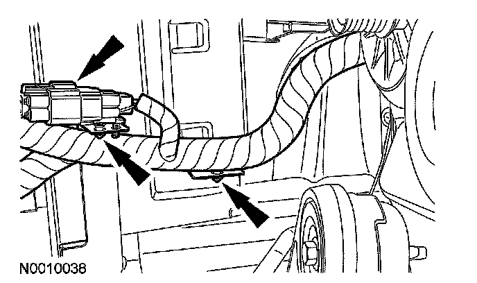 38. Detach the wiring harness retainer from the oil pan stud bolt.