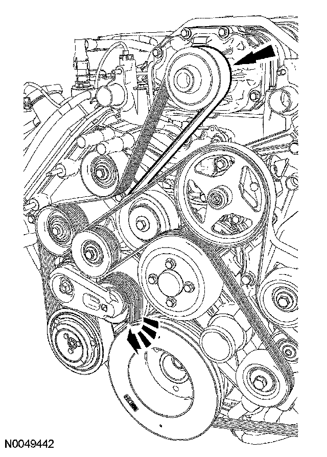 32. Rotate the SC drive belt tensioner clockwise and remove the drive belt from the SC drive pulley.