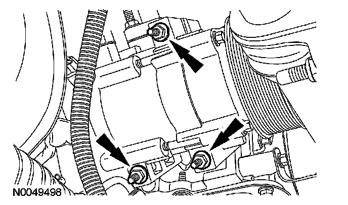 45. Remove the 3 stud bolts and position the A/C compressor aside.
