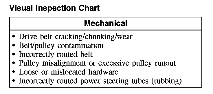 3. Eliminate all other non-belt related noises that could cause belt misdiagnosis, such as A/C compressor engagement chirp, power steering cavitations at low temperatures, variable camshaft timing (VCT) tick or generator whine.