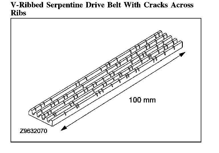 6. The condition of the V-ribbed drive belt should be compared against the illustration and appropriate action taken.