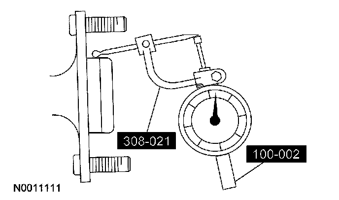 1. Position the special tools as close to the hub or axle flange face as possible. Zero the indicator to allow the pointer to deflect either way.