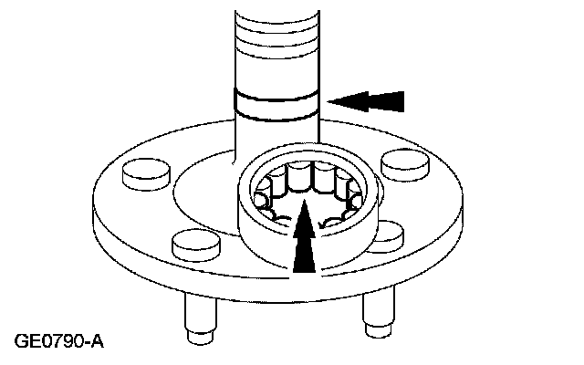 If the wheel bearing is damaged, the roller surface on the axle shaft may also be damaged. Install a new axle shaft if any damage is detected.