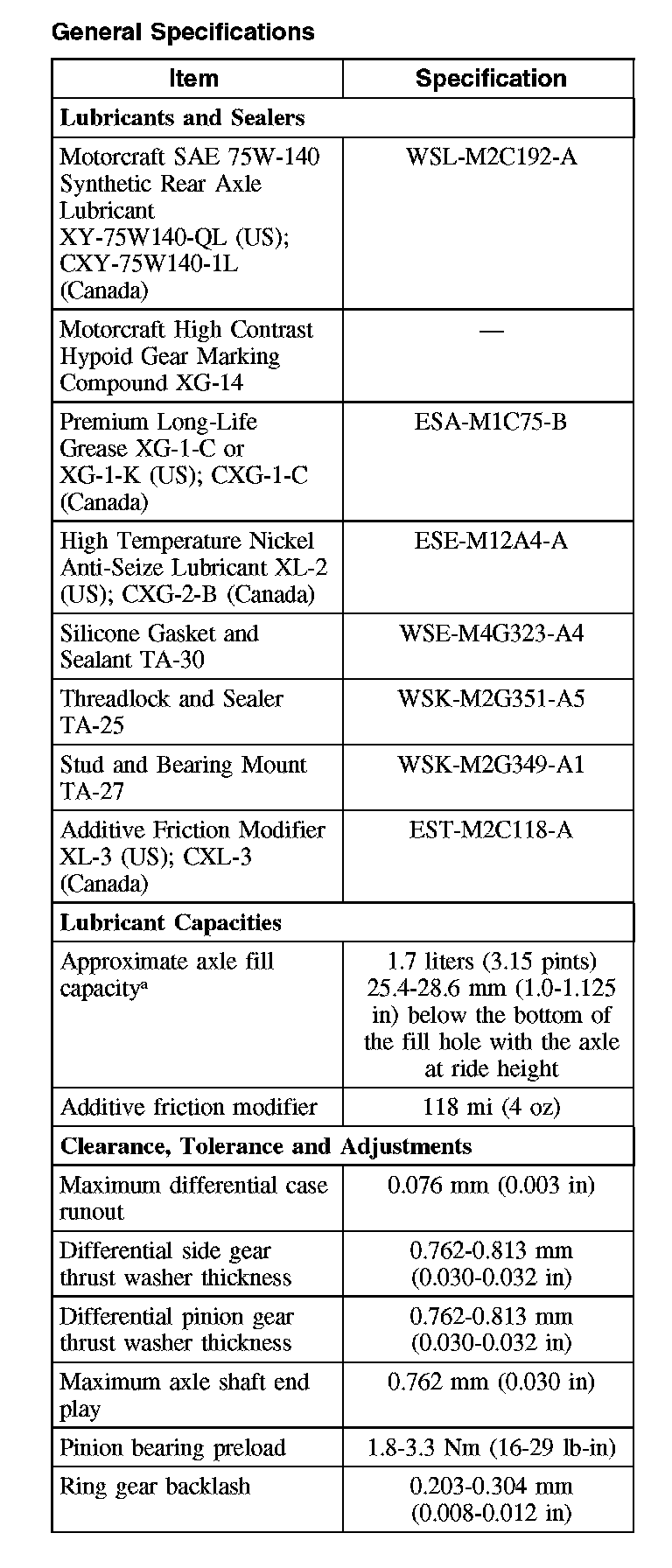 General Specifications