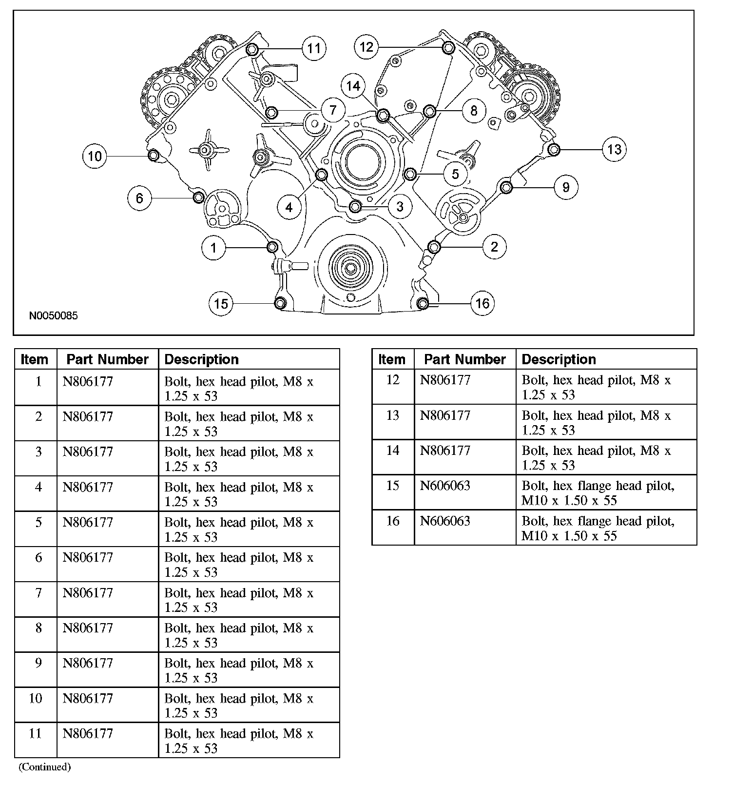 Timing chain tensioner bolts (secondary) 10 Nm (89 inch lbs.)