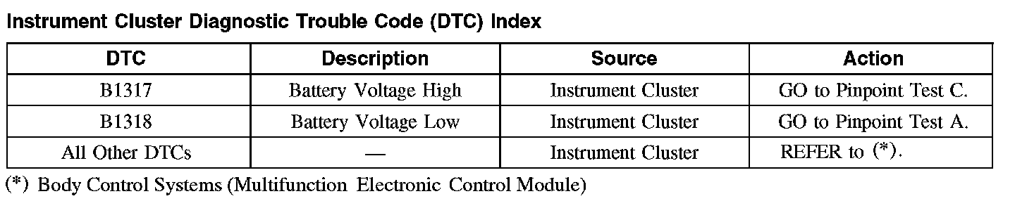 Instrument Cluster Diagnostic Trouble Code (DTC) Index