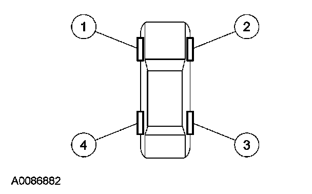 NOTE: If the vehicle has been stationary for more than 30 minutes, the sensors will go into a "sleep mode" to conserve battery power. It will be necessary to wake them up so they will transmit the latest tire pressure information to the smart junction box (SJB). Refer to TPMS Indicator Illuminates Continuously in the Principles of Operation portion of Tire Pressure Monitoring System Diagnosis and Testing.