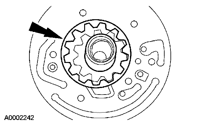 ^ Inspect the overdrive pump support gear pockets for scoring and wear.