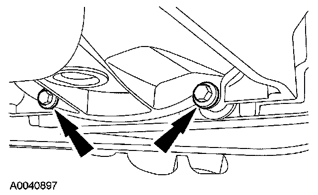 7. Remove the rear transmission crossmember-to-floor pan screws.