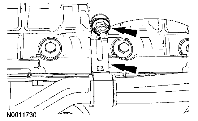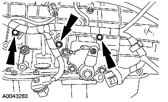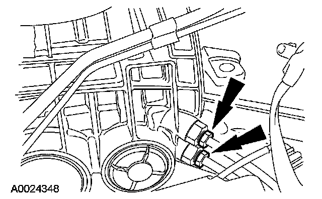 25. Remove the nut and position aside the transmission cooler tube bracket.