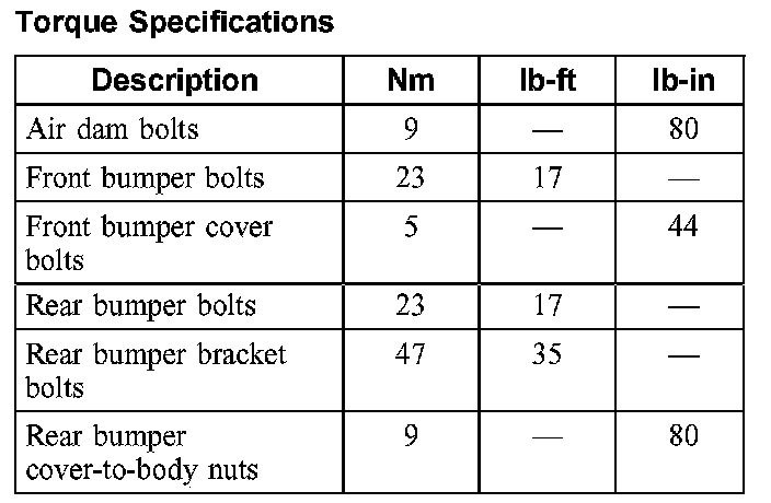 Torque Specifications: