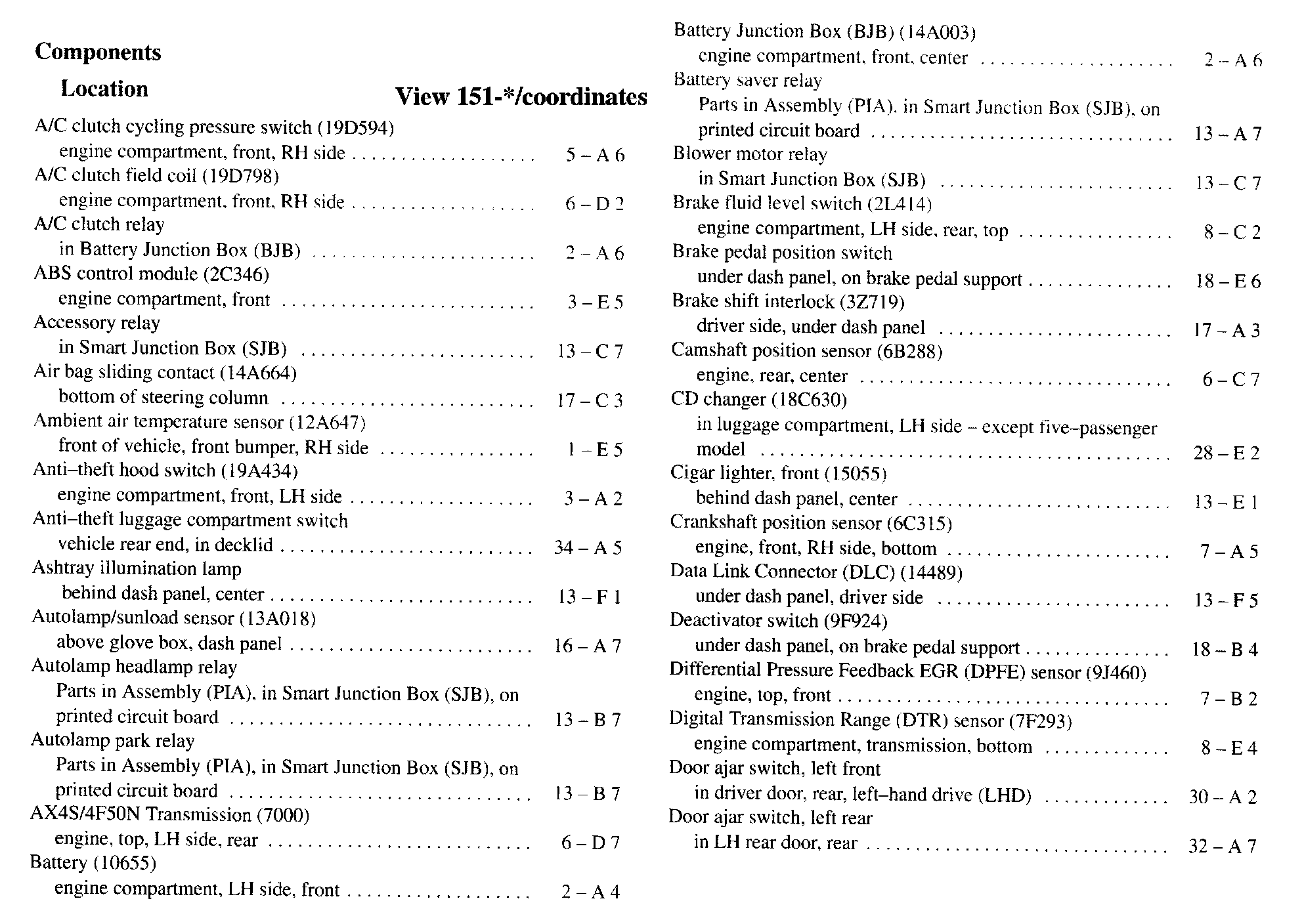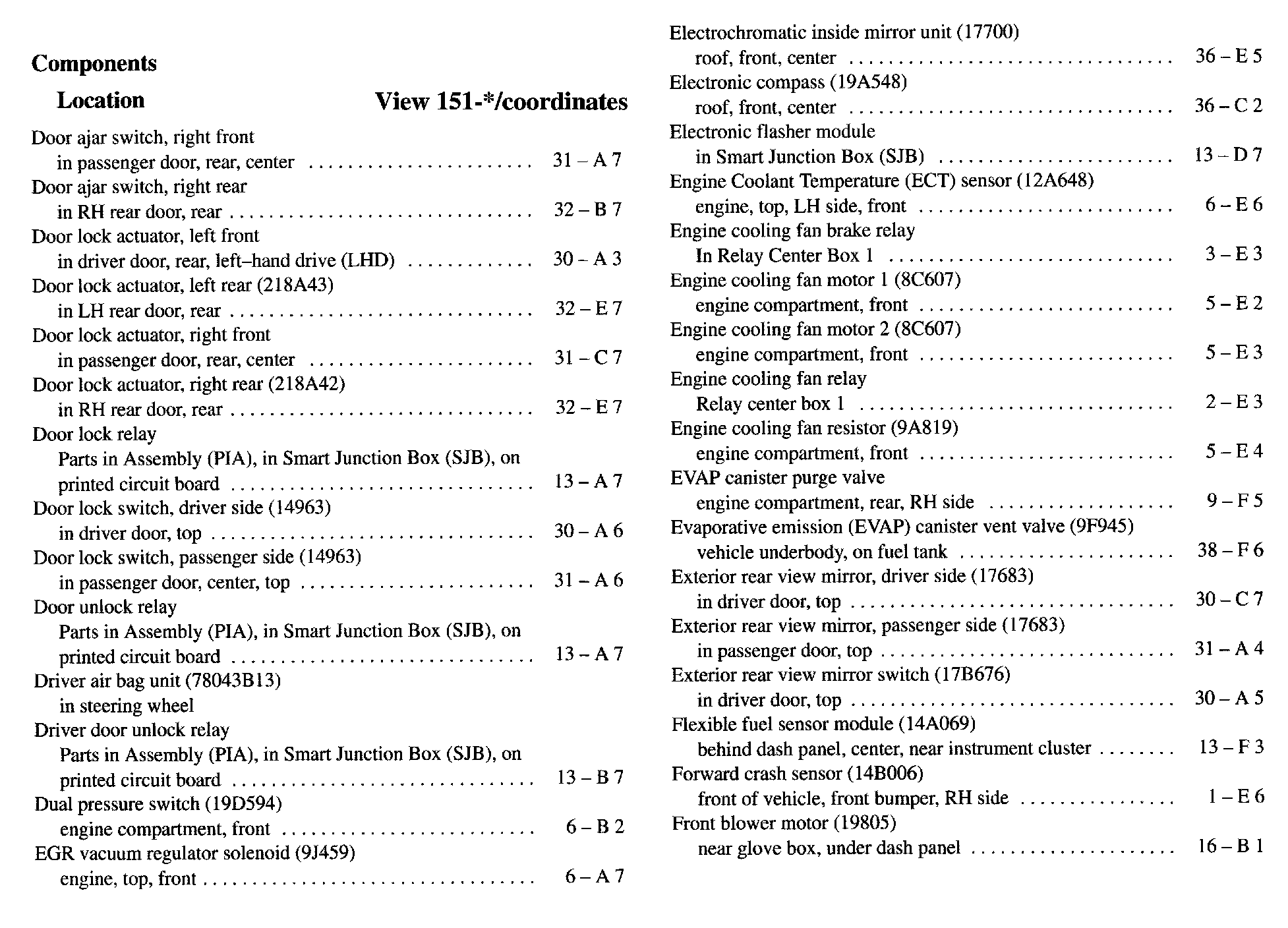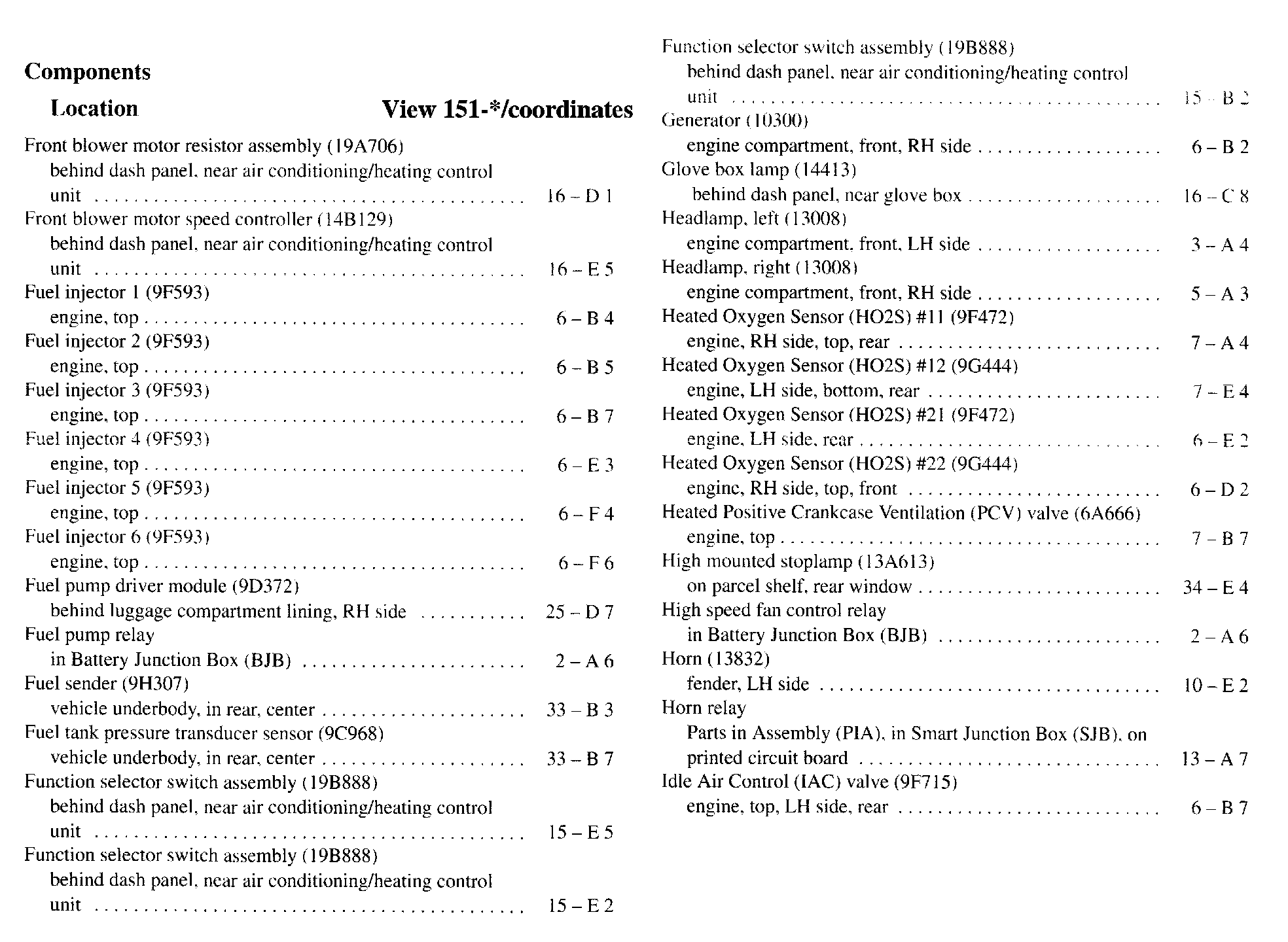 If a link on the Component Location Index to a View is not provided, that means that the Component and/or View in question does NOT apply to the vehicle model selected.