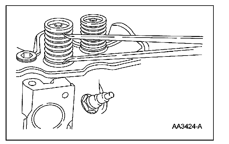 ^ Turn the valve spring and observe the space between the top of the valve spring and the square. Install a new valve spring if out of square.