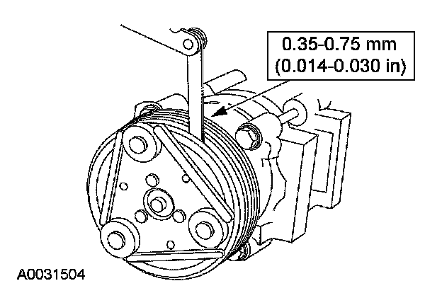 AIR CONDITIONING (A/C) CLUTCH AIR GAP ADJUSTMENT1. Check the A/C clutch air gap at 3 equally-spaced places between the A/C clutch disc and hub and the A/C clutch pulley.