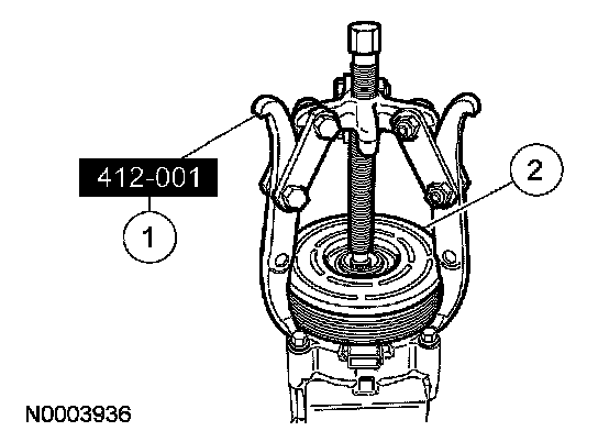 2 Place the special tool on the A/C clutch field coil.