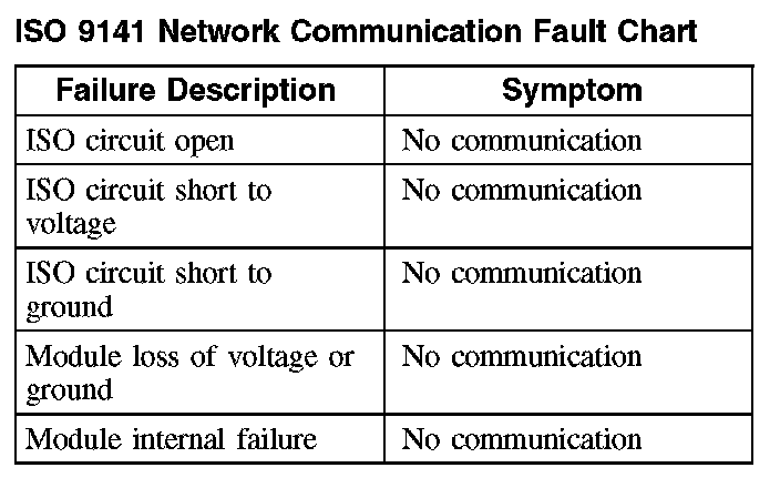 ISO 9141 Network Communication Fault Chart:
