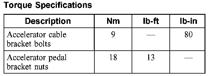 Accelerator Pedal: Specifications