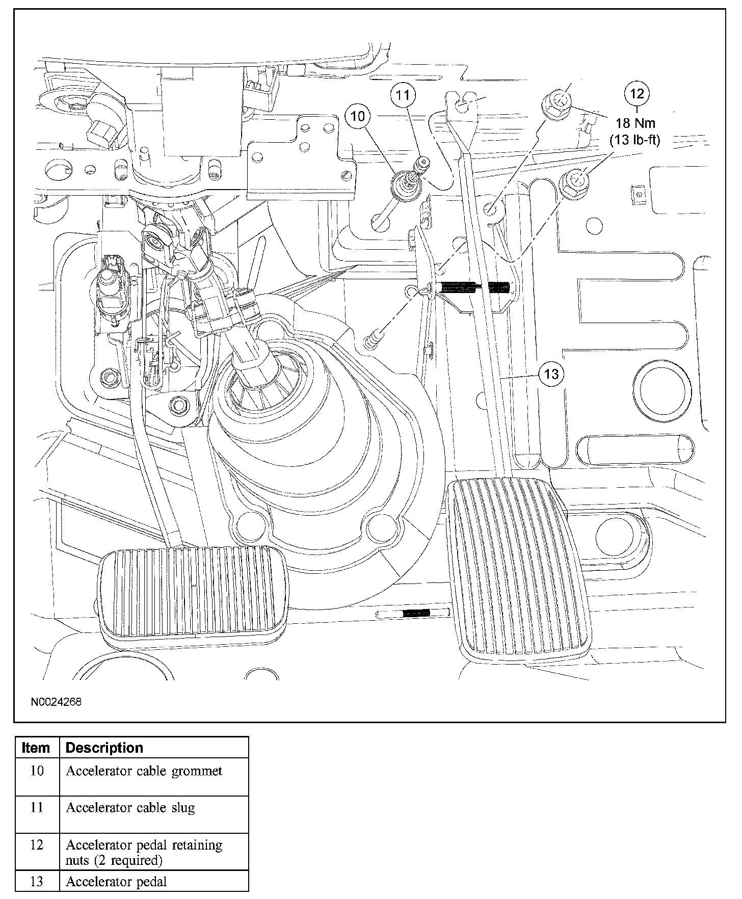 1. Position the accelerator pedal to relieve tension on the accelerator cable.