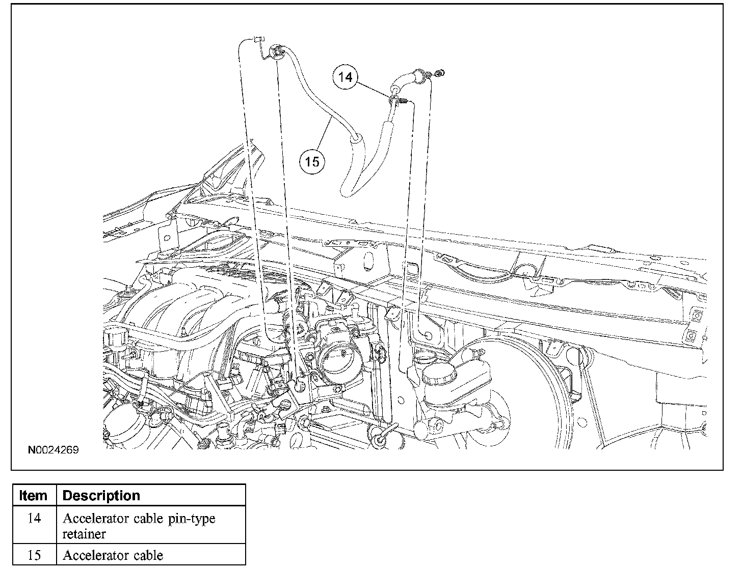 7. Release the accelerator cable pin-type retainer.
