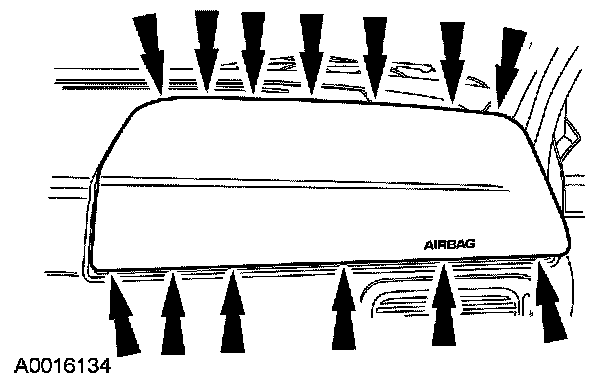 3 Pull the passenger air bag module and trim cover away from the I/P, but do not remove it.