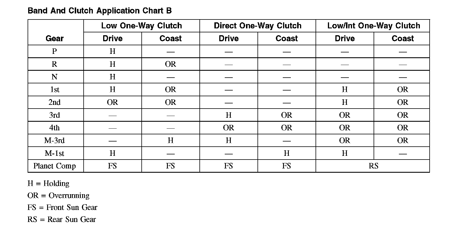 Band and Clutch Application Chart B
