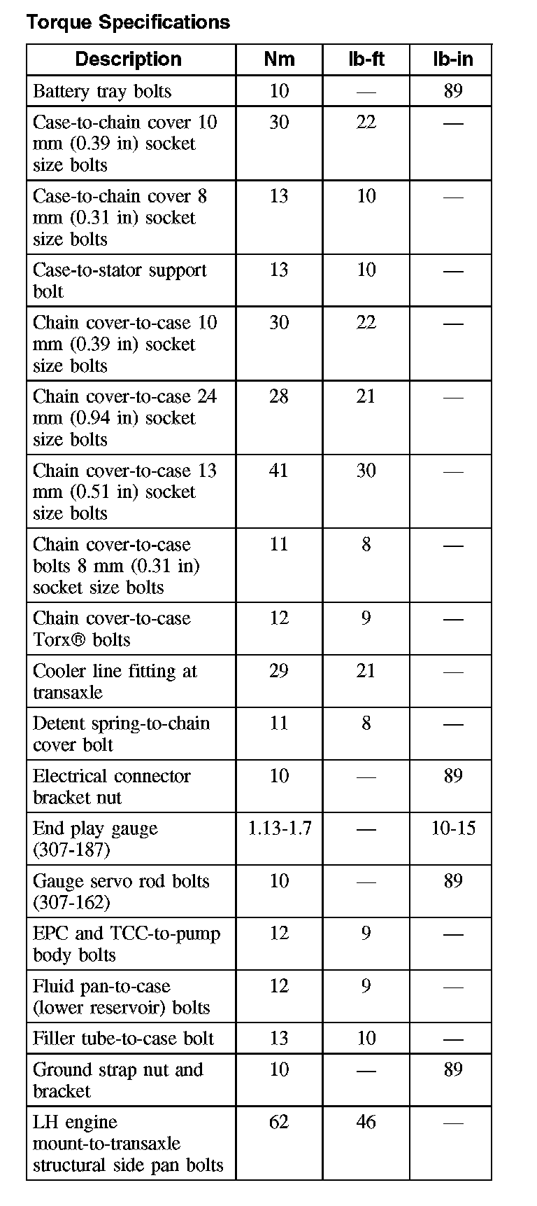 Torque Specifications