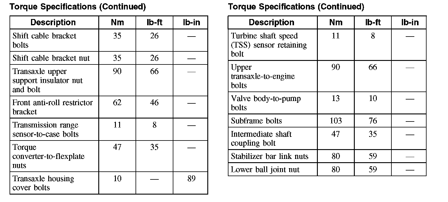Torque Specifications (Part 2):