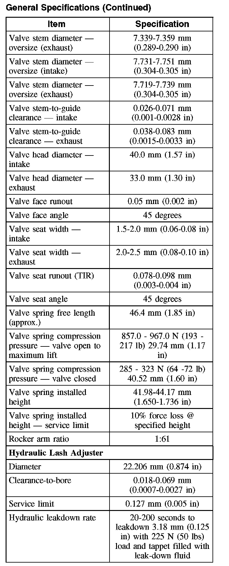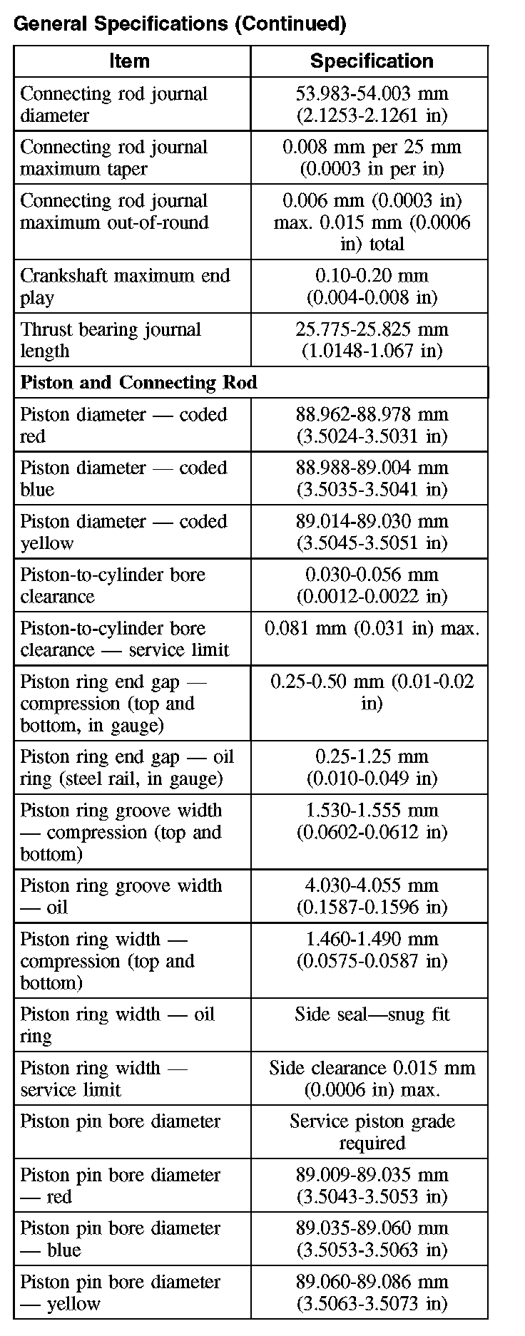 General Specifications