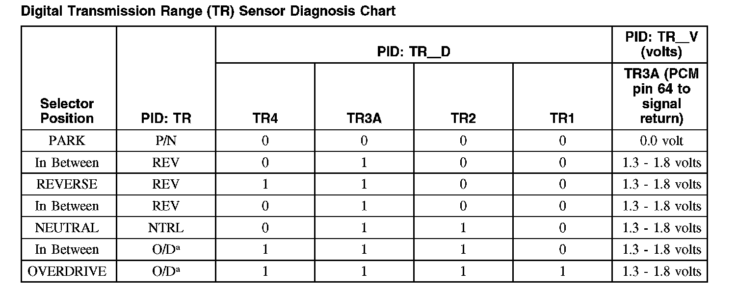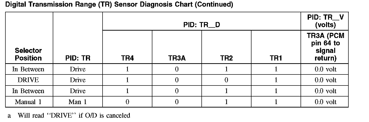 Digital Transmission Range (TR) Sensor Diagnosis Chart (Part 1):