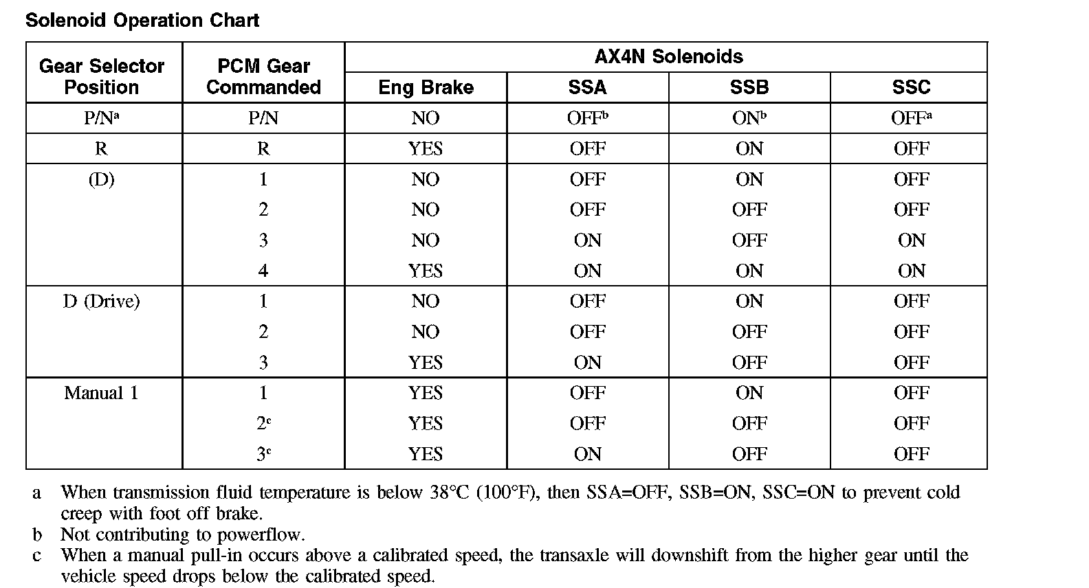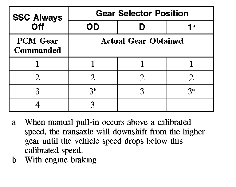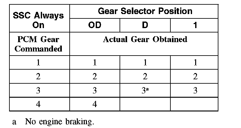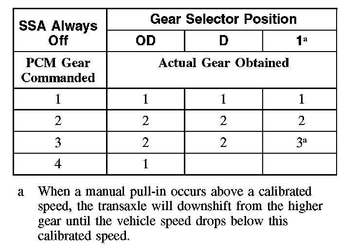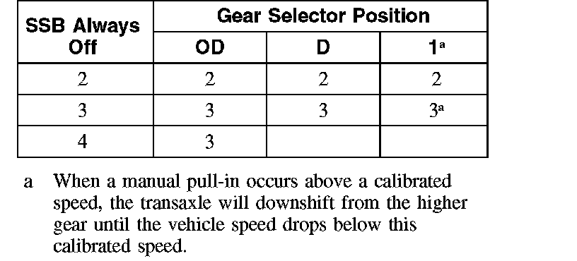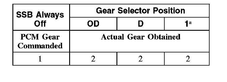 Shift Solenoid Failure Mode Chart "Always Off"