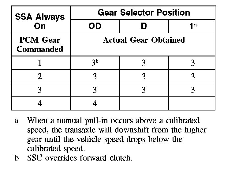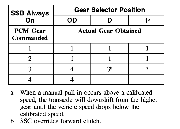 Shift Solenoid Failure Mode Chart "Always On"