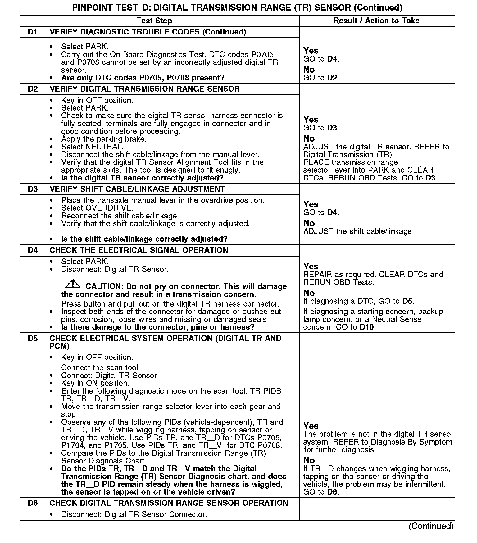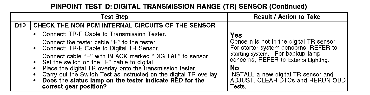 PINPOINT TEST D: DIGITAL TRANSMISSION RANGE (TR) SENSOR