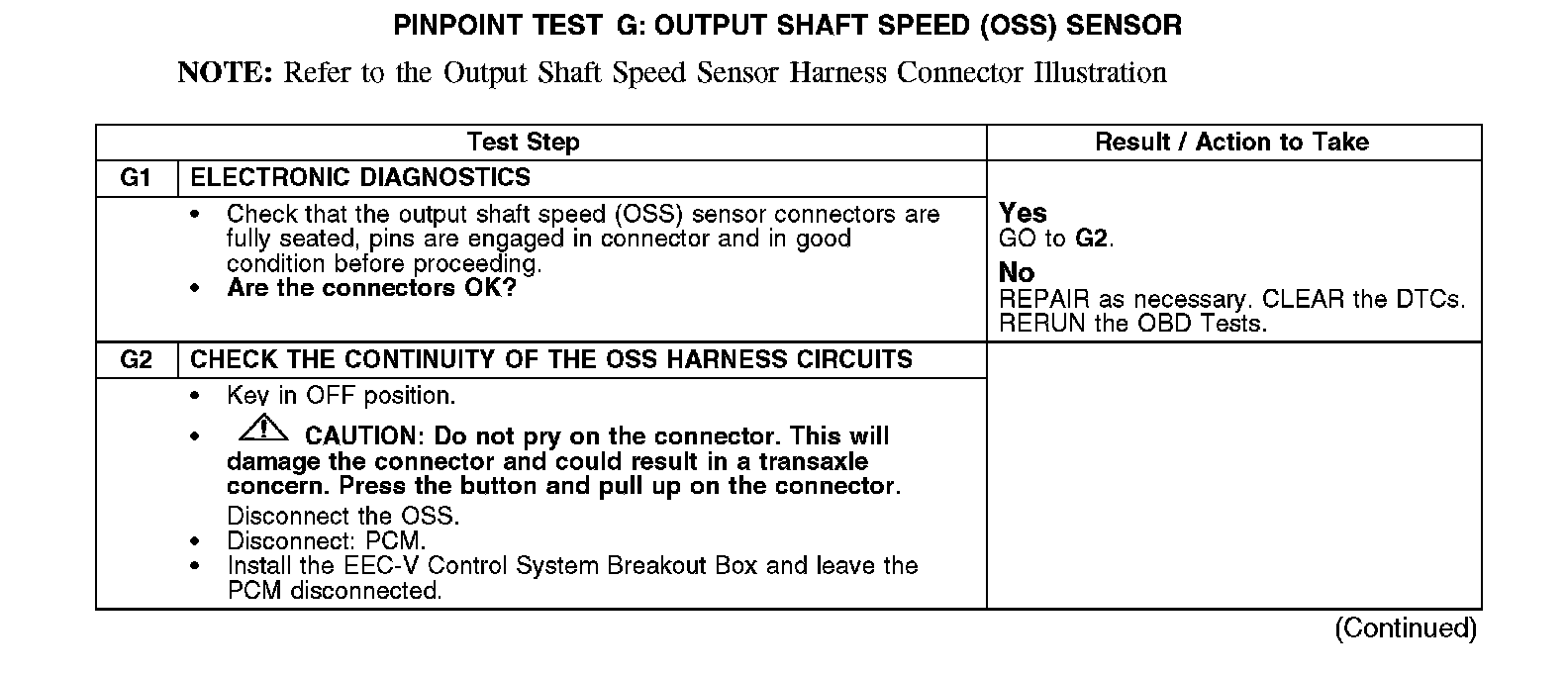 PINPOINT TEST G: OUTPUT SHAFT SPEED (OSS) SENSOR