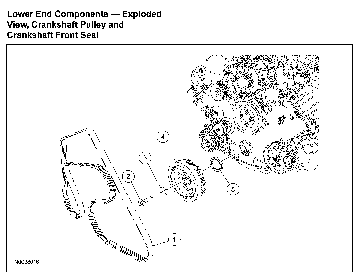 Lower End Components - Exploded View, Crankshaft Pulley and Crankshaft Front SealLower End Components - Exploded View, Crankshaft Pulley and Crankshaft Front Seal (Part 1):
