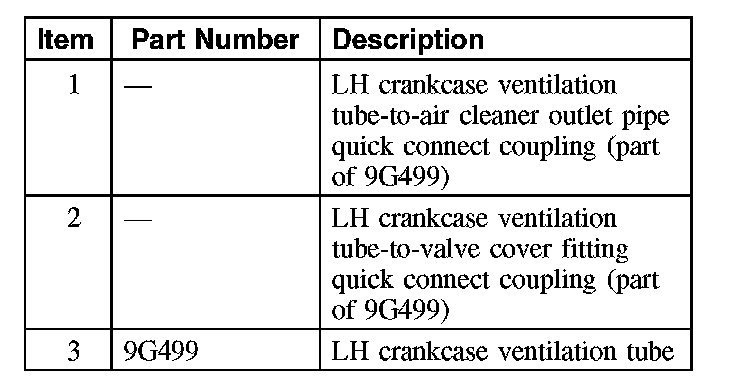 1. Disconnect the LH crankcase ventilation tube-to-air cleaner outlet pipe quick connect coupling.