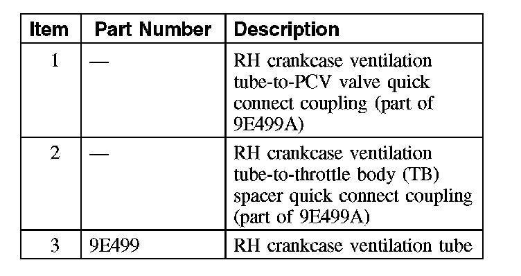 2. Disconnect the LH crankcase ventilation tube-to-valve cover fitting quick connect coupling and remove the tube.