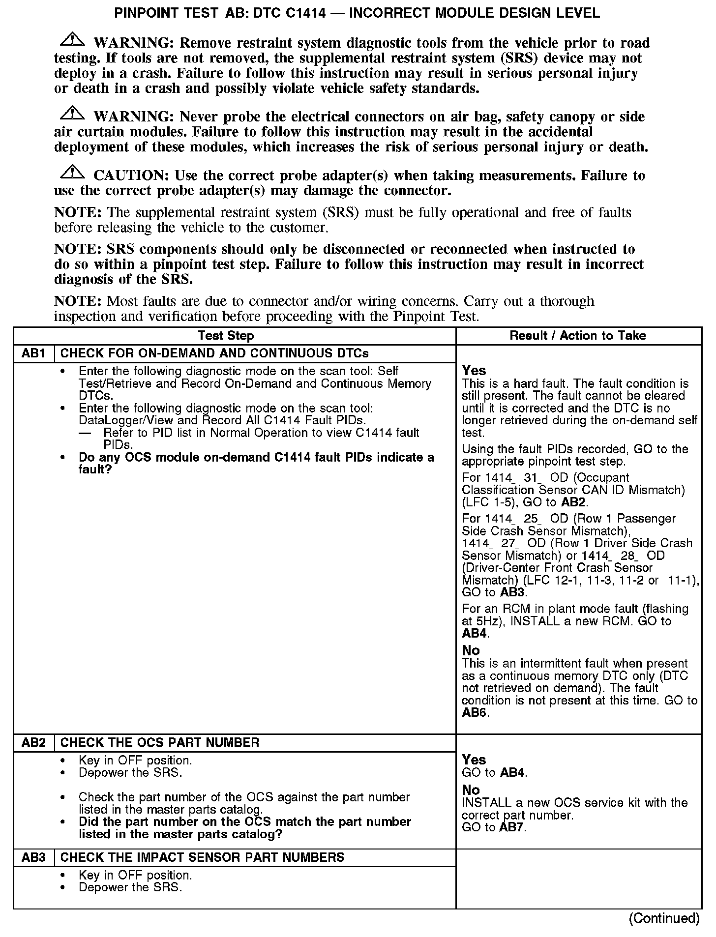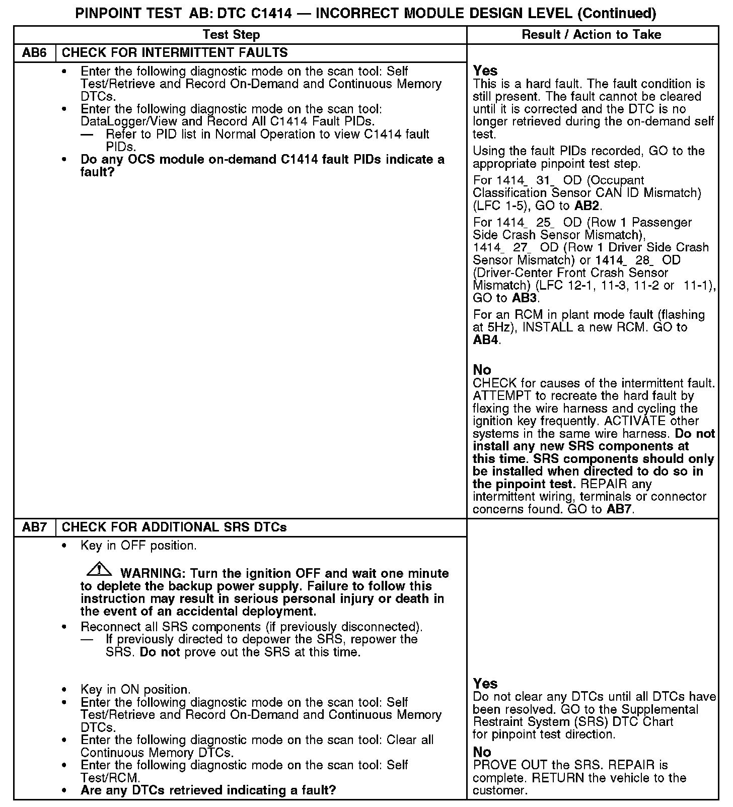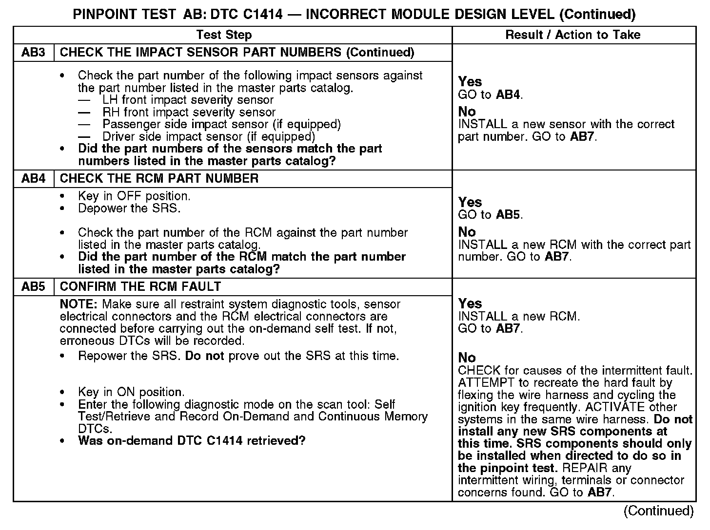 Tests AB: DTC C1414 - Incorrect Module