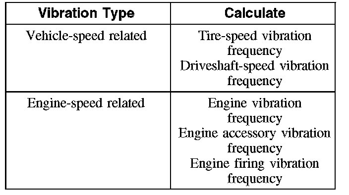 After carrying out the road test, the vibration was determined to be either vehicle-speed related or engine-speed related. That determination will identify the vibration frequency calculations that should be done.