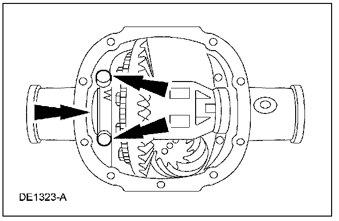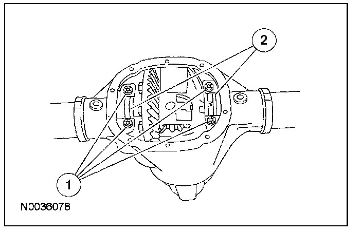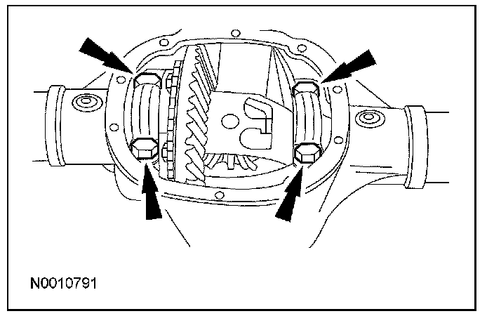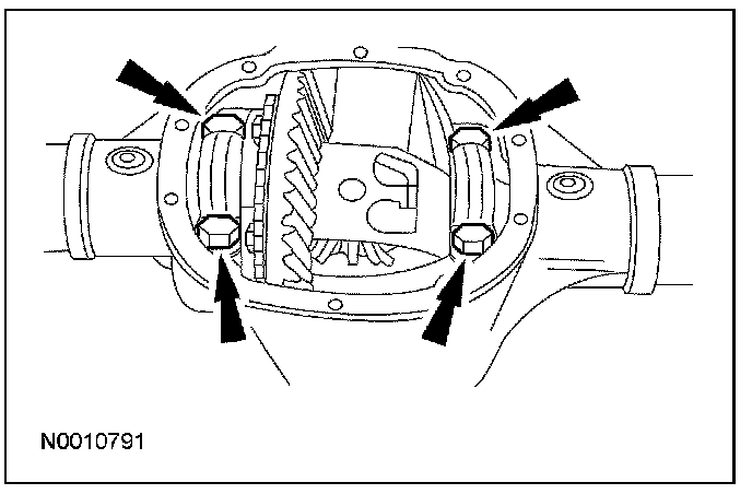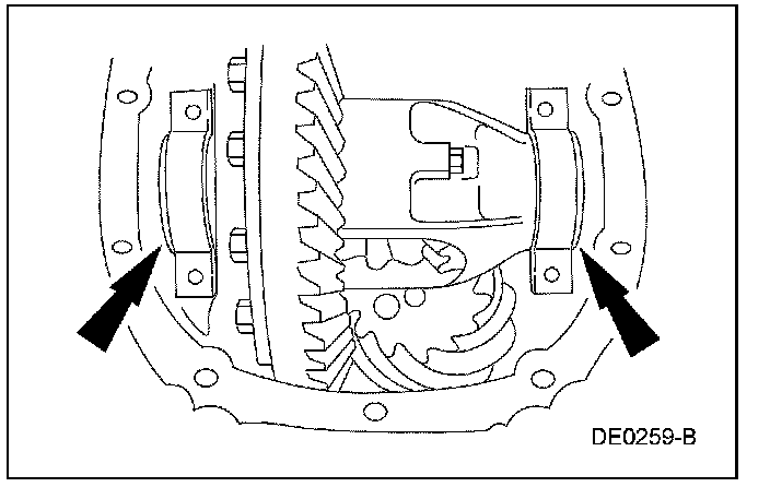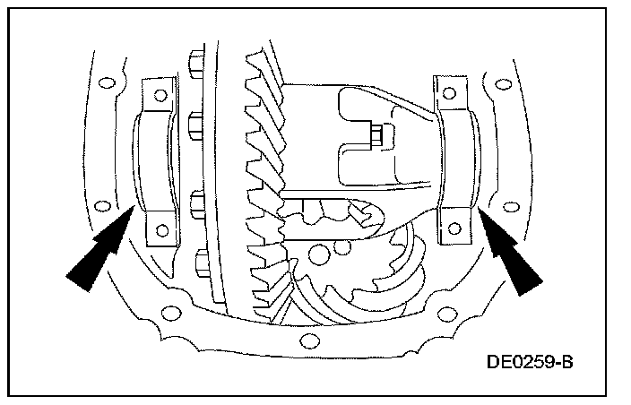 5. NOTE: Mark the position of the differential bearing caps, as the arrows may not be visible. Always install the bearing caps in their original locations and positions.