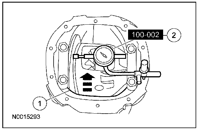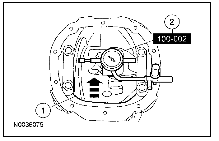 9. If the differential ring gear backlash variation between teeth measurement, taken at the beginning of this procedure, exceeded the specification, the cause may be a warped differential ring gear or differential case/differential bearing damage. Proceed as follows to verify the cause of the excessive backlash.