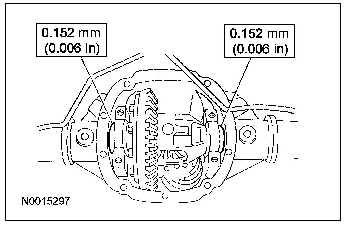 16. To establish differential bearing preload, increase both left and right differential bearing shim sizes by the specification shown.