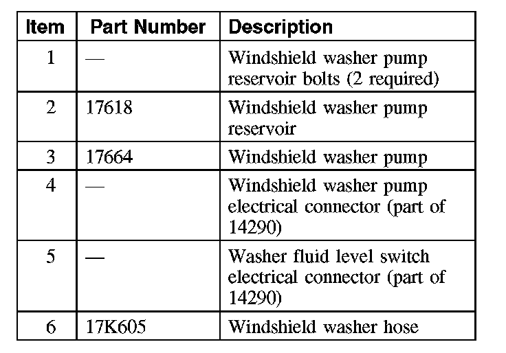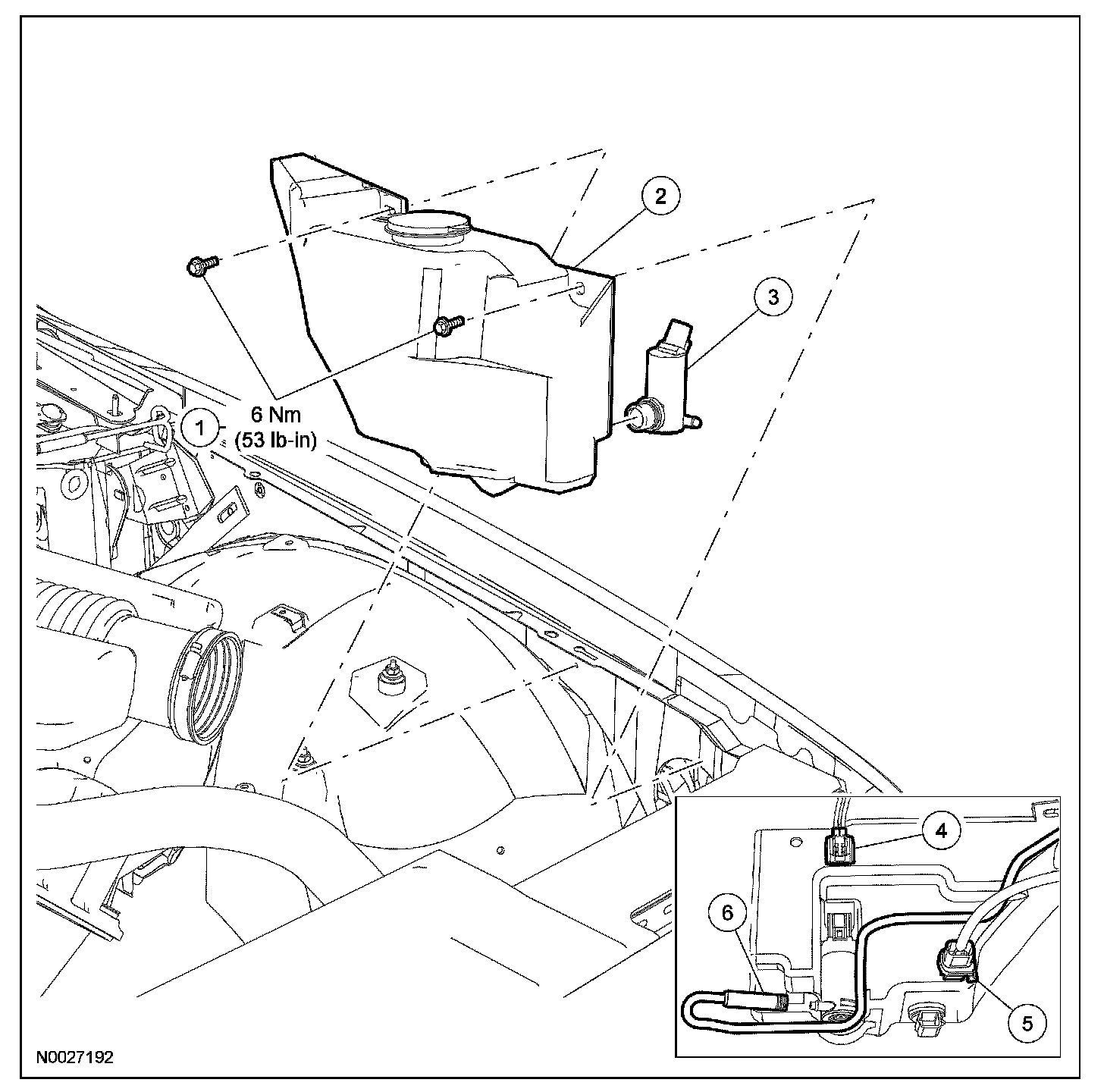 6. CAUTION: Do not operate the windshield washer pump prior to filling the windshield reservoir. Failure to follow this instruction may result in premature pump failure.